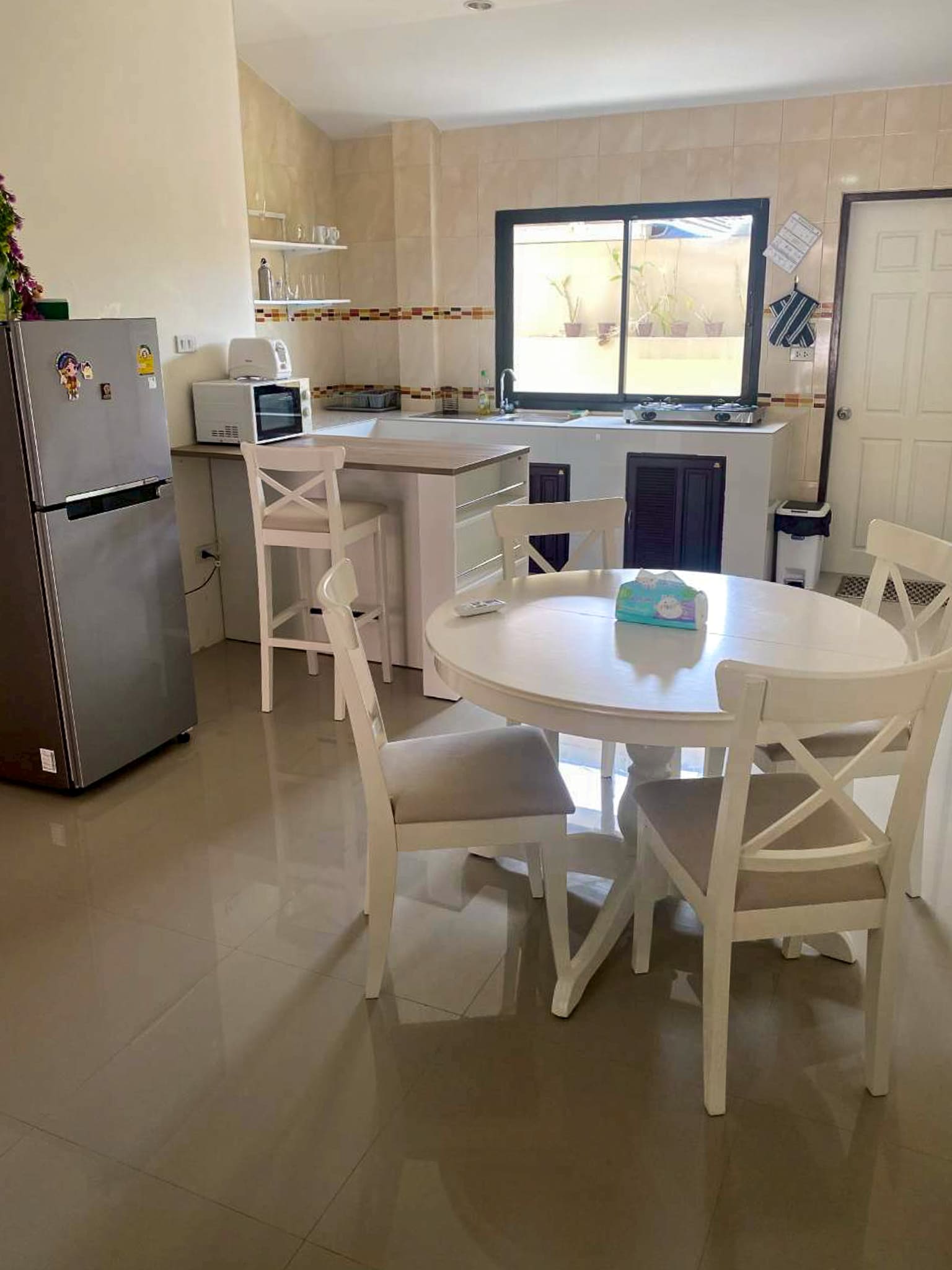 • Fully equipped kitchen with dining area