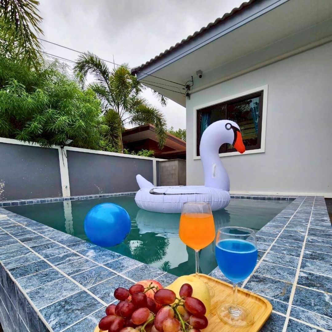 สระว่ายน้ำส่วนตัว พร้อมมุมนั่งเล่นนอกบ้าน
